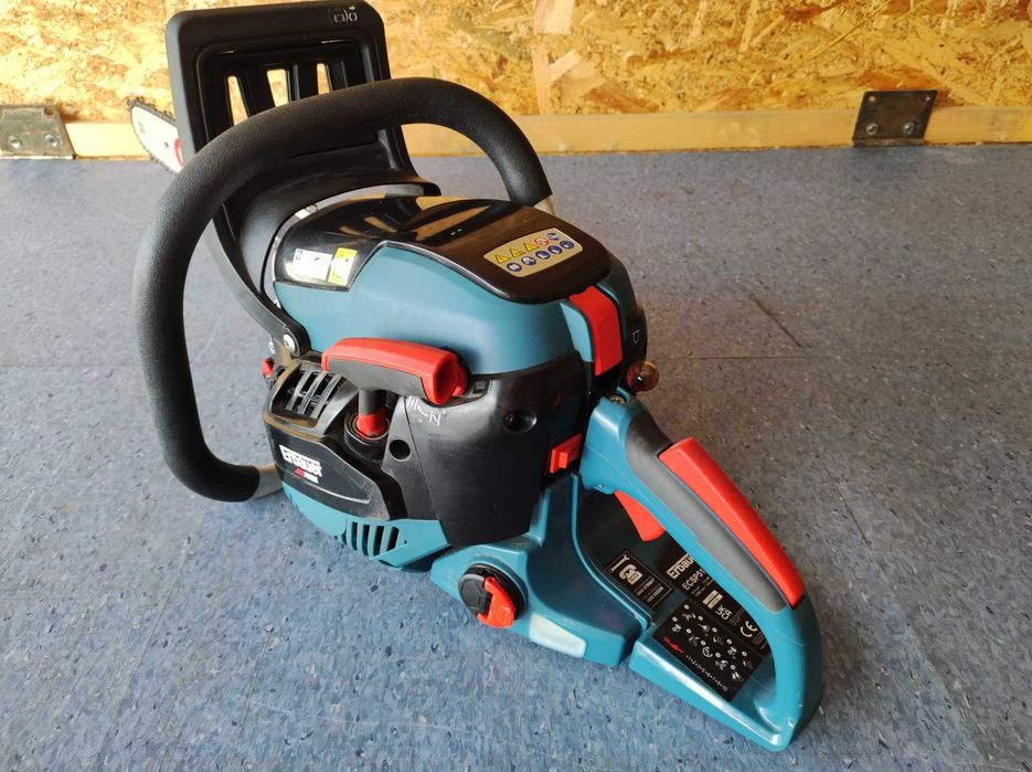 Piła łańcuchowa firmy Erbauer model ECSP51 o mocy 3,0 KM. Została wyposażona w prowadnicę o długości 50cm firmy Oregon. Jest to najwyższy model pilarki spalinowej tej firmy.