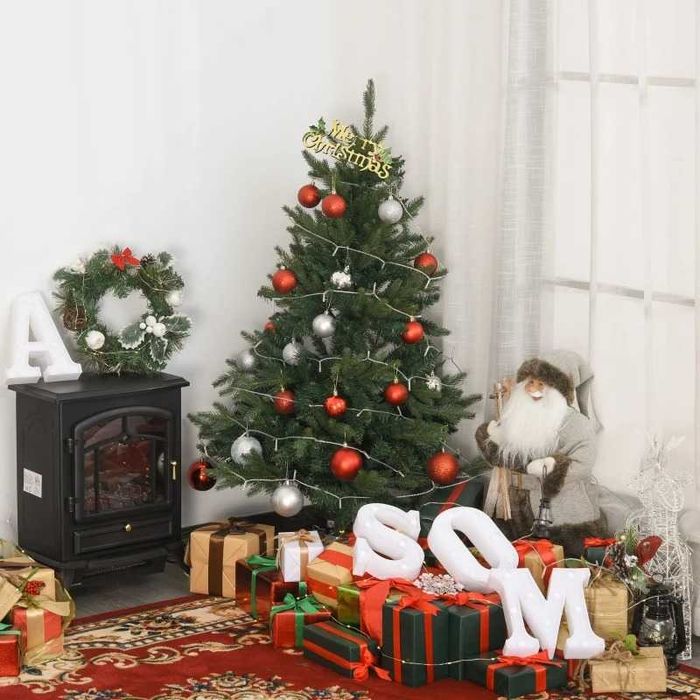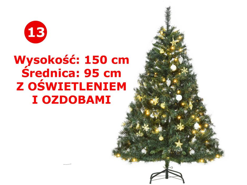 Sztuczna choinka gęsta LED z oświetleniem i ozdobami 150cm